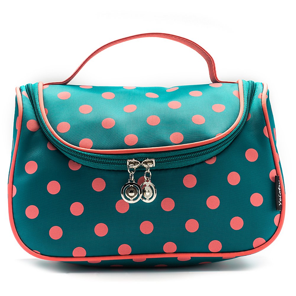 ·Классические и стильные узоры горшков в горошек на контрасте с ярким фоном делают косметичку очень шикарной.